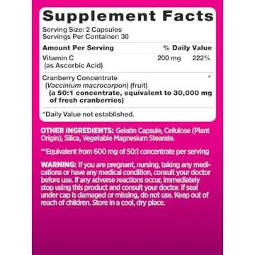 Show moreIntroducing the PINK Cranberry Pills for Women, a powerful blend of natural ingredients designed to support your urinary tract health and overall well-being. These 60 quick-release capsules feature a unique formulation that combines the goodness of cranberry extract, Vitamin C, and hibiscus, all crafted with women’s health in mind. The thoughtful creation of this supplement means that not only do you get a product that helps you feel your best, but also gives back, as a portion of every sale is dedicated to charities that empower women. Enjoy a convenient way to maintain your health without the hassle of traditional cranberry juice, while embracing a product that is both Non-GMO and Gluten-Free.