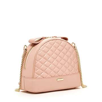 Pink Crossbody Purses and Handbags for Women Blush Cross body Bags Leather Crossover Purse Quilted Cute Designer Chain Cross over Handbag Genuine Real Lambskin Best Chic Womens Girls It Bag with Bow