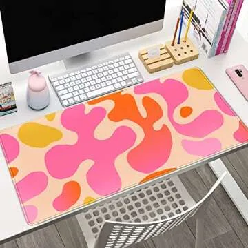 Pink Desk Mat Modern Abstract Large Mouse Pad XXL Cute Pink Desk Pad Keyboard Mat, Desk Accessories for Women Office Decor, Extended Mousepad 31.5''X15.7'' Non-Slip Rubber Base with Stitched Edges