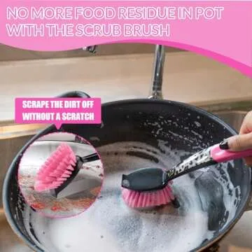 Pink Dish Brush, Kitchen Dish Scrub Brush Set, Dish Brush with Handle, Leopard Print Kitchen Scrub Brushes, 12-Piece Kitchen Cleaning Brush Set for Pots and Bottles, for Women