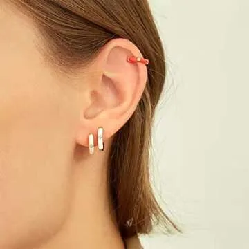 Pink Earrings Small Hoops, 18K Gold Plated Enamel Earrings Hypoallergenic Cute Tiny Gold Colorful Huggie Hoop Earrings Earrings for Women