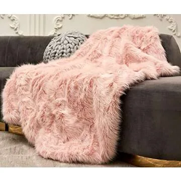 Pink Faux Fur Throw Blanket, Luxury Modern Blush Home Throw Blanket, Super Warm, Fuzzy, Elegant, Fluffy Thick Heavy Decoration Blanket Scarf for Sofa, Couch and Bed, 50''x 60''