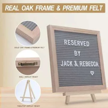 Show more If you're on the lookout for a unique gift that combines creativity with practicality, look no further than our stunning 10 x 10 inch light pink felt letter board. This exquisite product comes beautifully crafted with a solid oak frame, making it the perfect blend of durability and aesthetics. Designed for a multitude of occasions, this customizable word board allows you to express your creativity fluently through changeable letters, numbers, and symbols.
