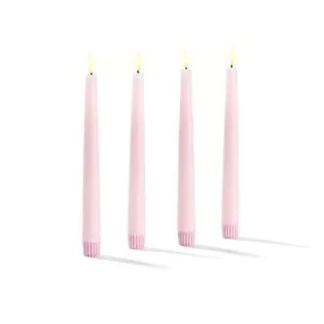 Pink Flameless Taper Candles - 4 Pack, 9 Inch Tall Remote & Timer, Real Wax, Unscented, Battery Operated Candlesticks with Flickering LED Flame, Blush Pink Wedding Centerpiece