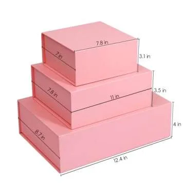 Pink Gift Box with Satin Ribbon Collapsible 11x7.8x3.5 Inches Gift Box with Magnetic Closure Matte Textured Finish Box for Wedding Gifts.
