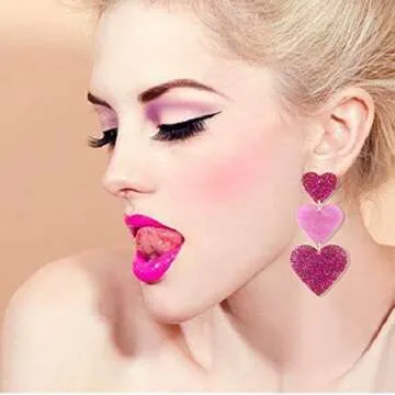 Step into the spotlight with our dazzling Pink Heart Earrings, designed to spark joy and add a touch of glam to any ensemble! Crafted from lightweight, sparkly glitter acrylic plastic, these earrings showcase a sweet and cute heart design that is the perfect accessory for Taylor Swift concert outfits, birthday parties, or just for those who love all things pink. At a mere 7 grams each, you can wear them all day without a second thought – no annoying tugging or discomfort, just pure style!