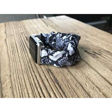 Show moreIntroducing the Pink Icing Bandz, the ultimate fusion of comfort and style designed specifically for your Apple Watch. This fabulous scrunchie replacement band fits seamlessly with various models including 38mm, 40mm, 42mm, and 44mm versions of Series 5, 4, 3, 2, and 1. Crafted from high-quality, stretchy material, this fashionable band offers a snug yet comfortable fit that ensures all-day wearability. What sets the Pink Icing Bandz apart is its stunning snake skin pattern, adding a trendy flair that effortlessly transforms your watch into a statement piece.
