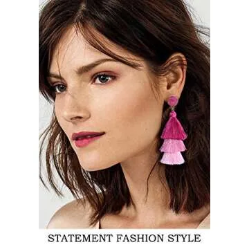Pink Ombre Tassel Dangle Earrings for Women Valentine Day Gift, Cute Lightweight Statement Light Pink Drop Earrings Stud for Wife Mom Birthday Party