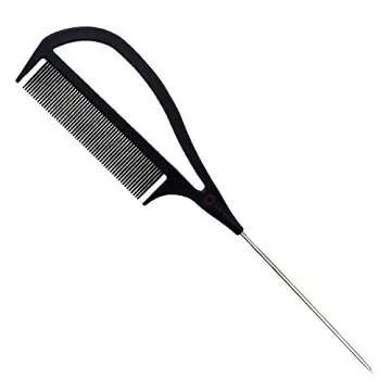 Pink Pewter Authentic "Never Let Go" Carbon Fibre Professional Styling Comb, Balayage and Highlighting Long Tail Metal Pick Teaser Comb (#2)