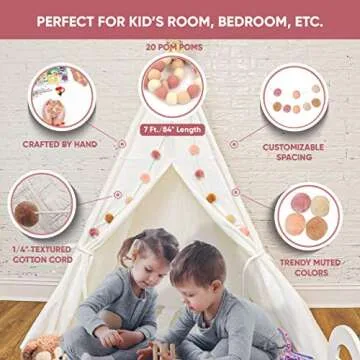 Pink Pom Pom Garland | Felt Ball Garland for Nursery, Baby Shower, Birthday and Valentine's Day | Boho Bedroom Decor for Girls | Blush Pink, Mauve and Mustard Gold