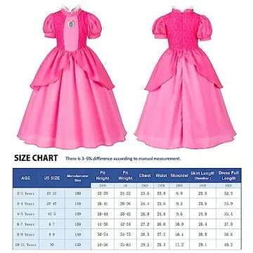 Specially sized for young princesses, please refer to the size chart to ensure a perfect fit. This costume is not just a dress; it’s a facilitator of dreams and adventures, enabling your child to step into a world of imaginative play.