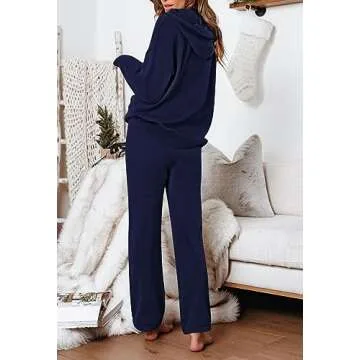 Show moreIntroducing the Pink Queen Lounge Sets for Women, a trendy two-piece knit sweater outfit that perfectly combines comfort with style. This chic sweatsuit features a cozy pullover knit hoodie sweatshirt designed with a flattering v-neck and versatile batwing long sleeves, making it a wardrobe essential for the cool fall weather. Whether you're lounging at home or stepping out for errands, this oversized loose-style sweatshirt ensures you look and feel fantastic. The matching high-waisted wide-leg pants come with an elastic drawstring waist for a relaxed fit, allowing quick adjustments for ultimate comfort. Enjoy the pockets embedded in the top, perfect for carrying small essentials while you’re on the go.