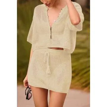 What sets this cover-up apart is its superior softness and stretchability. The drop shoulder design and crochet knit detailing offer a breezy vibe that’s ideal for summertime escape. The elastic waistband and handy drawstring of the high waist skirt provide a customizable fit, ensuring that it flatters your figure no matter your size, allowing for easy movement and all-day comfort. Dress it up with chic accessories or wear it casually—this versatile set will elevate any summer outfit!