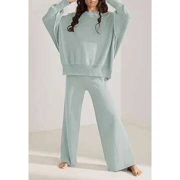 Pink Queen Travel Sets For Women Clothes 2 Piece Outfits Sweater Ribbed Knit Pullover Tops Wide Leg Pants Pjs Celadon S