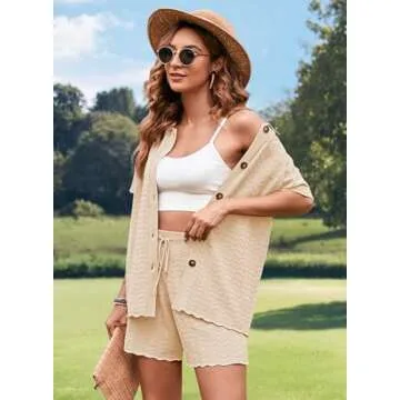 Knit set for women, 2 piece shorts outfits lounge set