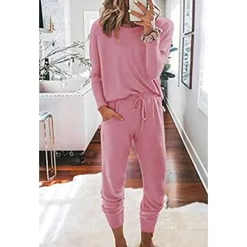 Pink Queen Women's 2 Piece Loungewear Set Outfits Casual Wear Pullover and Pants Sweat Suits L Pink