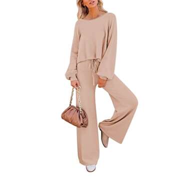 Pink Queen Women's 2 Piece Sweatsuit Set - Cozy Knit Top & Wide Leg Pants Khaki XL