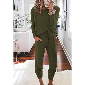 Pink Queen Women's 2 Piece Sweatsuit Long Sleeve Pullover Jogger Lounge Wear Tracksuit Set Army Green L