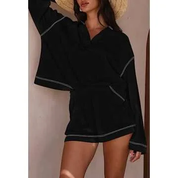 Pink Queen Women's 2024 Fall Casual Waffle Knit Long Sleeve Lounge Sets Casual Top and Shorts 2 Piece Outfits Sweatsuit