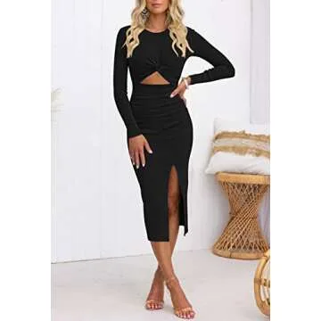 Women elegant cutout knee length midi knit dress