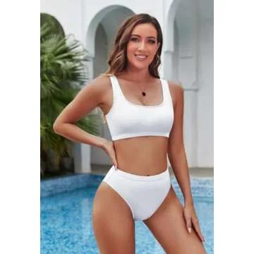 Pink Queen Women's Crop Top Scoop Neck High Waist Bikini Set Swimwear M White