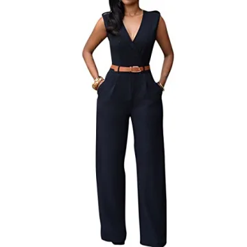This jumpsuit is tailored for versatility. Its sleeveless design features long, wide-leg pants that enhance your silhouette while allowing for freedom of movement. The included waist belt not only adds definition to your waist but also enhances the overall chic appeal. A hidden side zipper ensures a seamless look, making this jumpsuit a stylish addition to your wardrobe. Customers rave about its breathable and lightweight fabric, making it ideal even for the warmest summer days.