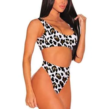 Pink Queen Women's Leopard Printed High Waisted Two Piece Bikini Set Size L