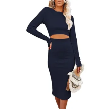Introducing the Pink Queen Women's Long Sleeve Bodycon Dress in a stunning Navy Blue, the epitome of elegance and comfort! Designed specifically for the modern woman, this sexy cutout midi dress is perfect for a range of occasions, from parties and club nights to date evenings and weddings. It's crafted from a soft, stretchy ribbed knit that not only hugs your curves beautifully but also ensures all-day comfort, making you feel as fabulous as you look. The full-body shaper...