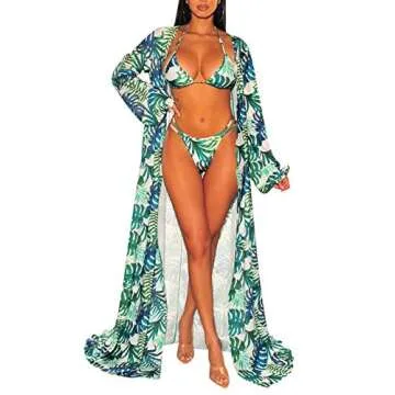 Show more Introducing the Pink Queen Women's Long Sleeve Leaf Print Sexy Maxi Long Bathing Suit Swimsuit Tie Front Robe Cover Up Green M – your ultimate companion for summer fun and stylish beach days. Crafted from soft and stretchy fabric, this stunning cover-up offers incredible comfort while providing a fashionable flair to your beachwear or home lounging experiences. Designed with a plunge V neckline and a chic tie front, this robe effortlessly complements your swimsuit and enhances your figure. The gorgeous leaf print combined with puff long sleeves adds a touch of elegance to your look, making you the center of attention wherever you go.