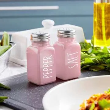 Pink Salt and Pepper Shakers Set - Pink Kitchen Decor and Accessories - Cute Glass Salt Shaker for Kitchen and Table, RV, Camp,BBQ