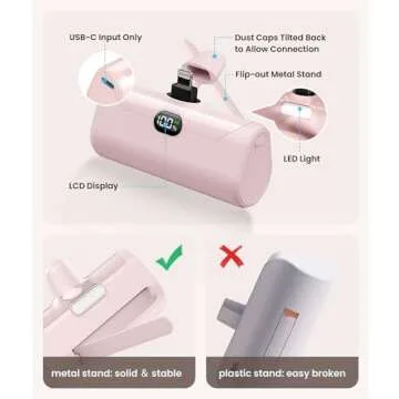 When you put the Pink Small Portable Charger side-by-side with competitors, it stands out due to its unique features such as the built-in metal stand and stylish design. While many chargers offer fast charging capabilities, few integrate a flashlight feature or a pocket-friendly size, ensuring that this charger is both aesthetic and functional. Additionally, the all-round safety features and customer support further elevate its status as the go-to portable power bank.