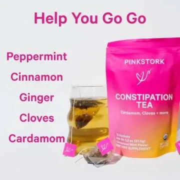 Show more Experience a gentle and natural solution to constipation with Pink Stork Constipation Tea. This carefully crafted blend is designed specifically for women, including pregnant and breastfeeding moms, who seek relief from digestive discomfort. With a formulation of USDA organic herbs, it features traditional ingredients such as Dandelion Root, Ginger, Peppermint, Cardamom, and Cloves, all working harmoniously to ease constipation and support digestive health.