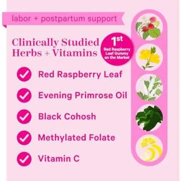 Pink Stork Red Raspberry Leaf Gummies - Third Trimester Labor Prep + Postpartum Mood Essentials with Evening Primrose Oil + Black Cohosh - 60 Vegan Gummy Supplements, Non-GMO