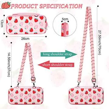 Pink Strawberry Pattern Protective Case and Carrying Case Compatible with Nintendo Switch, Soft Slim Case Cover for Console and Controllers, Hard Shell Travel Carrying Bag with 12 Game Card Slots