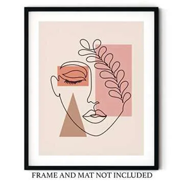 Pink, Tan, Coral, Brown Abstract Botanical One Line Woman Wall Art | Neutral Beige 11x14 UNFRAMED Print - Lovely Female Face Decor