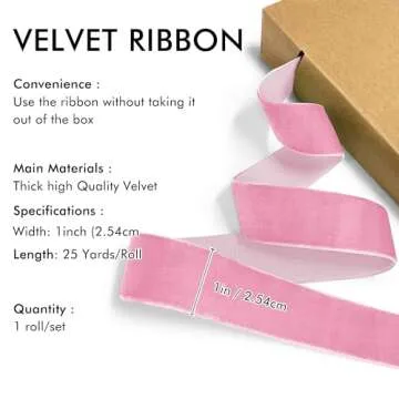 Pink Velvet Ribbon 1'' 25 Yards for Christmas Tree, Gift Wrapping, Flower Bouquet, Wreath Decorations, Bow Making