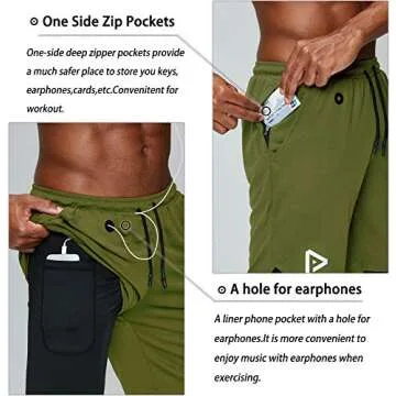 Pinkbomb Men’s 2 in 1 Running Shorts – Quick Dry Gym Workout Gear with Phone Pocket