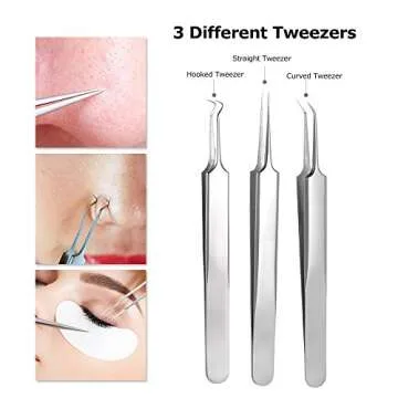 Pinkiou Blackhead Removers Comedone Pimple Popper Tool Acne Extractors Blemish Remover Ingrown Hair Tweezers Removal Kit Whitehead Remover Zit Treatment Skincare Tools for Face Nose, 8-in-1