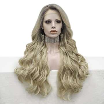 Discover the allure of the PINKSHOW Ombre Blonde Lace Wig, a stunning addition to your beauty arsenal. This wig is designed with a natural hairline featuring soft lace for an incredibly realistic appearance, making it suitable for both casual outings and sparkling events. Crafted from high-quality heat-resistant fibers, this wig can handle temperatures up to 350℉, allowing you to style it as you wish with heating tools like hair dryers...