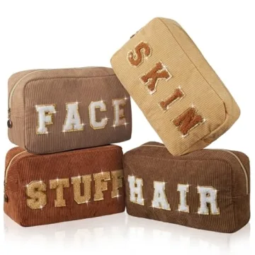 Show moreIntroducing the **Pinkunn 4 Pcs Preppy Makeup Bags**, the perfect blend of style and functionality for the modern woman. Beautifully designed with shimmering chenille letter patches adorned with glitter borders, these makeup bags not only keep your items organized but also make a chic statement wherever you go. Each set includes four spacious bags, each showcasing a unique style, offering a versatile solution to meet your daily storage needs. Crafted from durable corduroy, these practical pouches feature smooth zippers that ensure your essentials stay secure while allowing easy access.