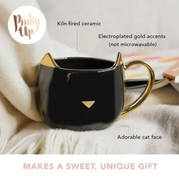 Pinky Up Chloe Black Cat Ceramic Coffee Mugs, Hot Tea Cups, Cute Travel Mug, Latte Cup, Drinking Glasses for Chocolate, Milk, Cocktails, Mocktails, Home Kitchen, 12 oz, Set of 1