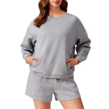 PINSPARK 2 Piece Short Sets for Women Long Sleeve Sweatshirt Matching Sets Crew Neck Sweat Suits 2024 Fall Travel, Light Grey Small