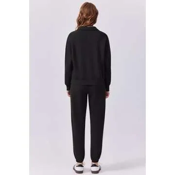 PINSPARK Airport Outfits for Women 2024 Fall 2 Piece Tracksuit Lounge Set Long Sleeve Half Zip Sweatshirt Sweatpants Jogger Sets,Black Large