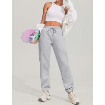 PINSPARK Warm Grey Sweatpants for Women | Fleece-Lined Lounge & Athletic Pants