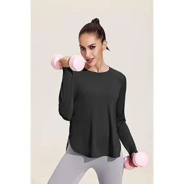 Show more Introducing the PINSPARK Long Sleeve Shirts for Women, your ultimate companion for outdoor activities and workouts. Designed with a focus on comfort and performance, this athletic top delivers UPF 50+ protection to shield you from 99% of harmful UV rays. Crafted from a buttery soft fabric, it ensures a luxurious feel against your skin while offering exceptional moisture-wicking capabilities to keep you dry and comfortable throughout your journey.