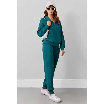 PINSPARK Two Piece Sets for Women 2024 Fall Travel Outfits Lounge Set Long Sleeve Tracksuit Sweatsuit Half Zip Jogger Set Matching Set,Green Jade Large