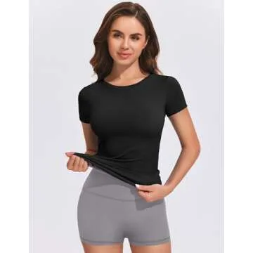 Show more Introducing the PINSPARK Workout Tops for Women, your new go-to for any active occasion. Made from a premium, stretchy fabric, this shirt combines comfort and functionality with its slim-fit design and 4-way stretch. Say goodbye to discomfort during your workouts; the quick-drying, moisture-wicking material guarantees that you stay cool and dry, no matter how intense your session gets. Whether you're powerlifting at the gym, practicing yoga, running outdoors, or simply navigating your day, this versatile top offers both style and performance that you can rely on.