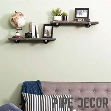 Pipe DÉCOR Industrial Pipe Shelf Brackets 4 Pack, Authentic Plumbing Pipe & Fittings, Wall Mounted Double Flange Floating Shelves, Rustic Set for Vintage Shelving Decor (8 Inch)
