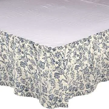Piper Classics Doylestown Queen Size Floral Bed Skirt w/ 16" Drop, Blue & Cream Gathered Dust Ruffle, Country Cottage, Vintage Farmhouse Bedroom Décor