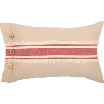 Piper Classics Farmhouse Red Grain Sack Stripe Throw Pillow Cover, 12" x 20", Beige